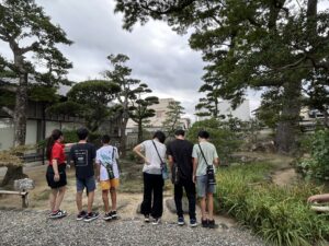 庭には、江戸時代から残る「鶴亀の庭」があり、鶴と亀がどこかにいるらしく、みんなで探したのですが見つけられず笑